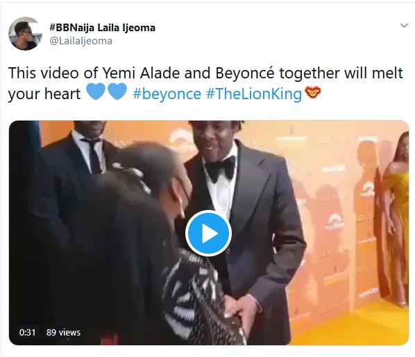 One of the most beautiful videos you will be setting your eyes on on social media this week is that of Yemi Alade and Beyonce together at the premiere of the movie ‘Lion King.’