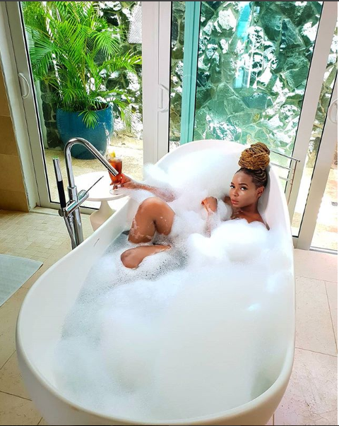 Singer, Yemi Alade, shared this photo of herself in a bathtub while protecting her modesty with strategically placed bubbles.