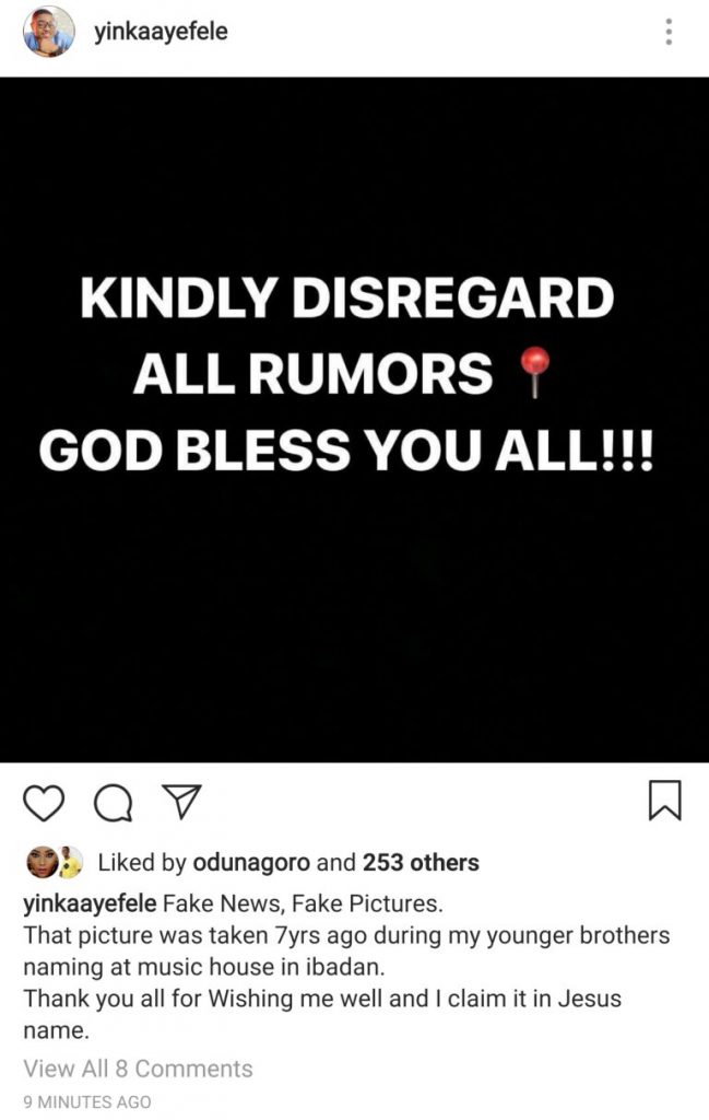 Contrary to news around the music star compound about the arrival of triplets by her wife in the USA, the music star shares the below on IG denying anything related to such happened of recent.