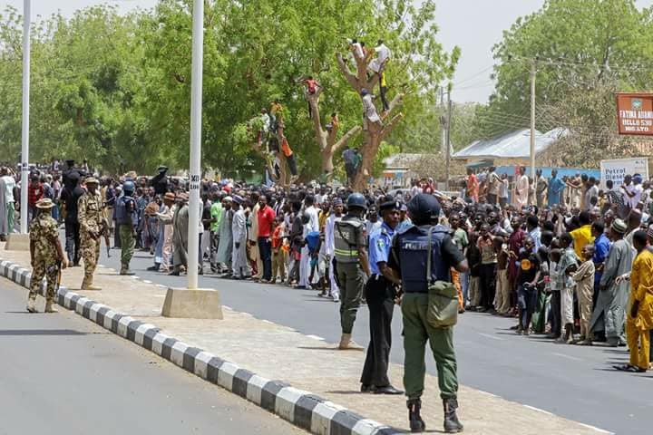 Yobe Residents Spotted Climbing Trees Just To See President Buhari During His Visit