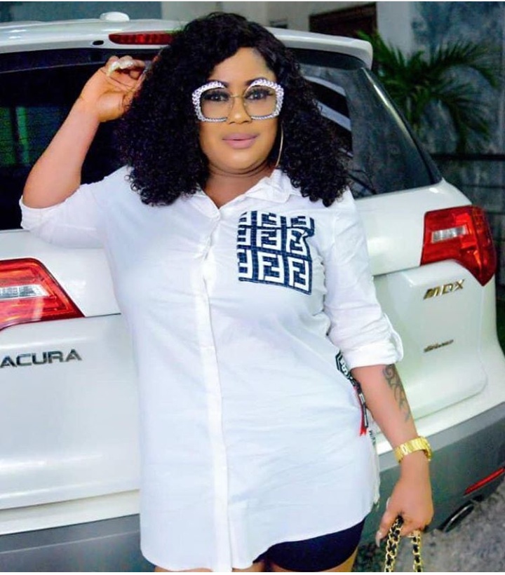 Yoruba actress, Tayo Odueke popularly known as ‘Sikiratu Sindodo’ rocks bum short flaunting her thighs to an event which she complimented with white t-shirt.