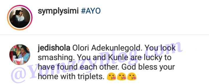 She said God will bless she and Adekunke Gold’s union with triplets and they are so lucky to have each other.