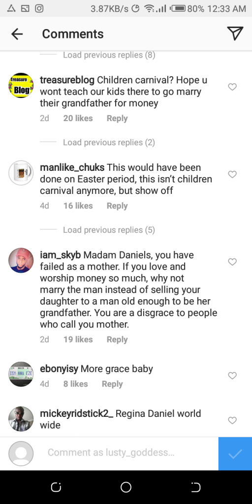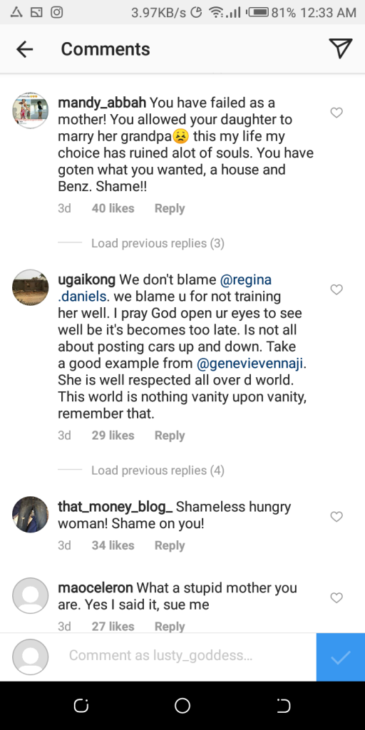 So so disappointing & disgusting coz she was a role model to de young ones but now she is just a bad influence. U shud v said No if ur mum was behind it coz u r no more dat 16yr Regina_Daniels & considering ur position n status