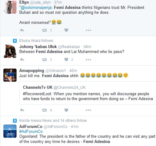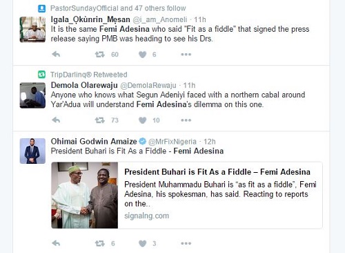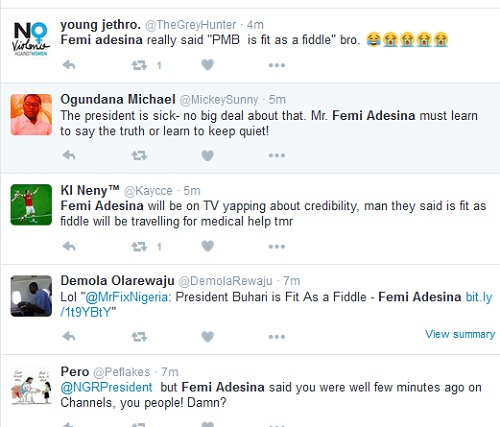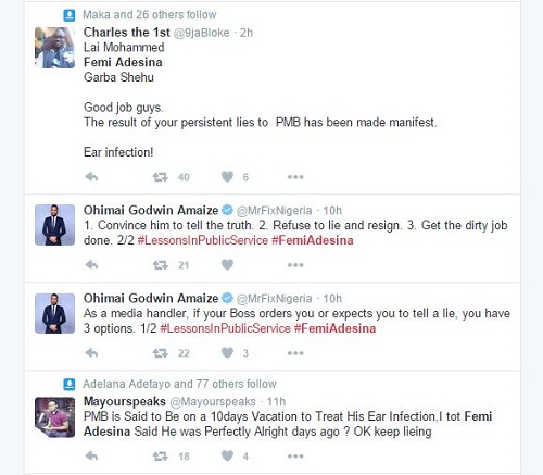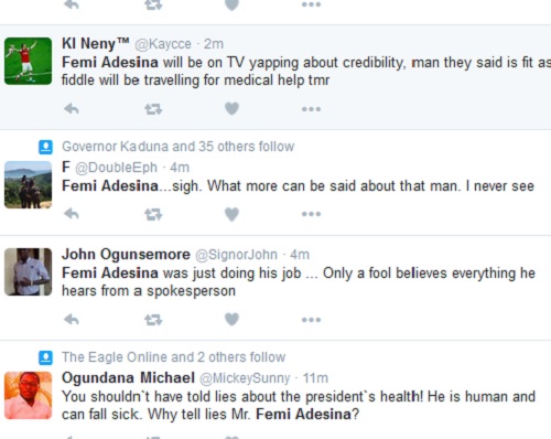 Nigerians have descended on Buhari’s special adviser on media and publicity, Femi Adesina for his blatant lies after he rubbished claims that Buhari is sick only for him to eat his own words.
