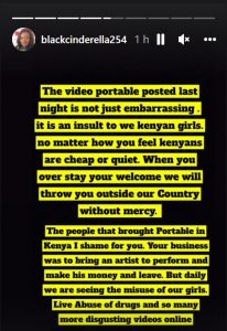 A Kenyan OAP, Black Cinderella has called out Nigerian musician, Portable accusing him of misusing and ridiculing Kenyan girls.