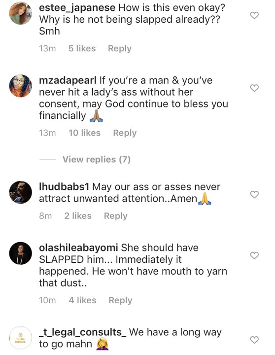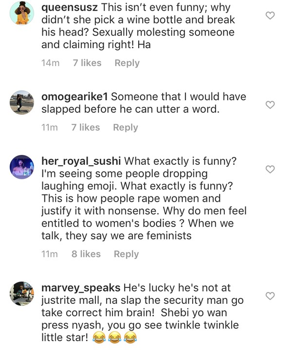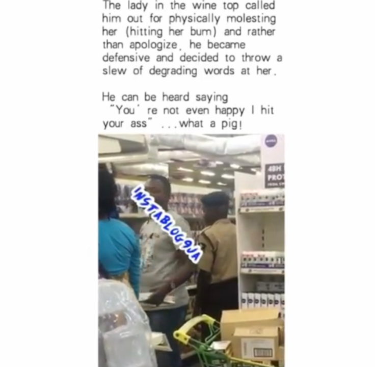 In the video, A lady in wine top called out a man for physically hitting her on her bum and rather than apologizing the man became defensive and decided to throw a slew of disregarding words to her.