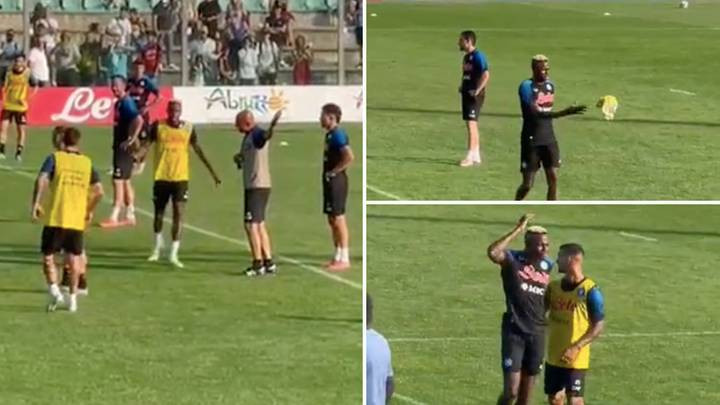 Super Eagles striker, Victor Osimhen was kicked out of training by Napoli’s Head Coach Luciano Spalleti following a training ground bust-up on Sunday, July 24.