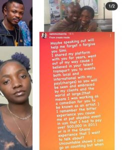 According to MC Morris, maybe speaking out will help him forget and forgive Simi for what she did after she ignored him after he shared his platform with her for years and went out of his way cause he believed in her talent and transported her to events.