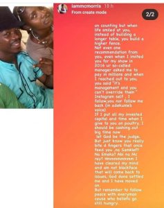 MC Morris sounded a little bitter about the fact that Simi didn’t return the help he gave her as an artist advising her to remember to follow peace with every man because a wealthy person still gets hungry, Simi is yet to respond to that.