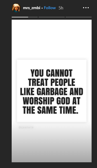 Zahra Buhari who took a swipe at perceived hypocrites, has stated that one cannot treat people like garbage and worship God at the same time. Asides stating the one cannot treat people like garbage and worship God, Zahra Buhari further disclosed that privacy is power as people cannot destroy ruin what they don’t know.