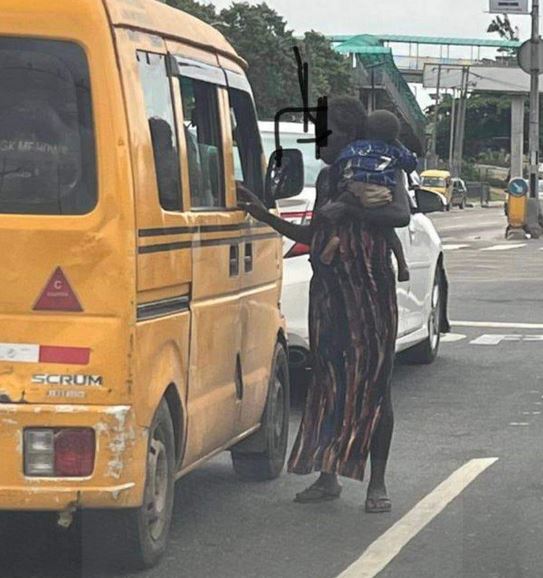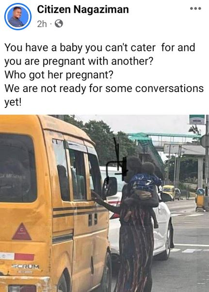 A Nigerian man, Citizen Nagaziman has taken to Facebook to share a video of a heavily pregnant woman begging with her child.
