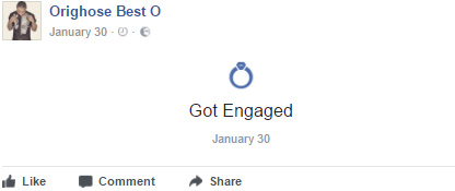 Best Orighose had been working for the deceased’s father before they started dating and got engaged early this year. Her last Facebook update before her death was a post acknowledging a change in her relationship status. Orighose also changed his relationship status on January 30th to show that he was engaged. That was his last Facebook update before the incident