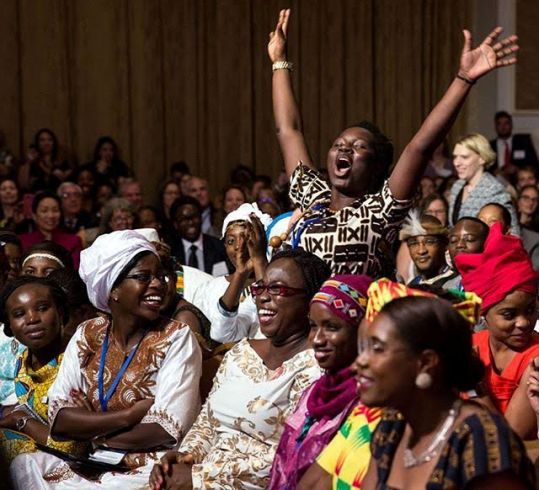 An audience member from Kenya celebrated after President Obama chose her to ask a question during the Young African Leaders Initiative town hall today in Washington DC.