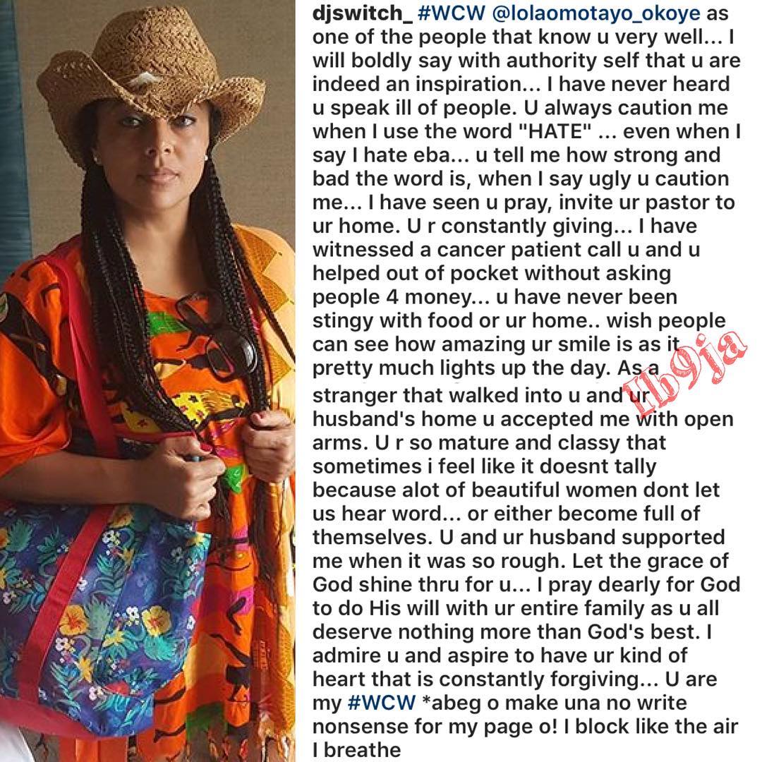 “You Supported Me When It Was So Rough And As A Stranger, You Accepted Me With Open Arms,” DJ Switch Tells Lola Okoye