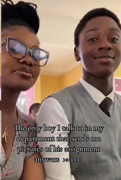 Mixed reactions as young girl shows off her male course mate who sends her pictures of his assignment for her to copy.