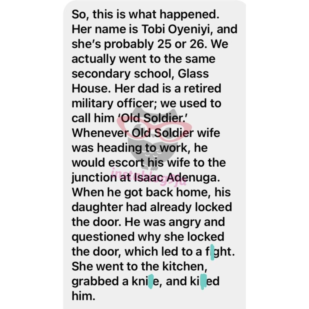 A disturbing incident has been reported on a popular social media platform, formerly known as Twitter, involving a young Nigerian woman who allegedly murdered her father following a heated argument at home.