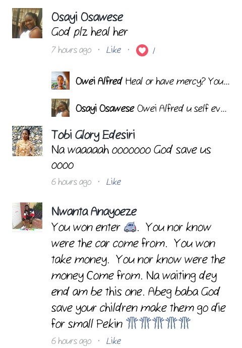 According to a Facebook user, who claimed the young lady must have been used for some money ritual, he wrote;