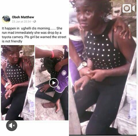 A young lady allegedly ran mad in Ughelli, Delta State yesterday after she was dropped from a Toyota Camry.