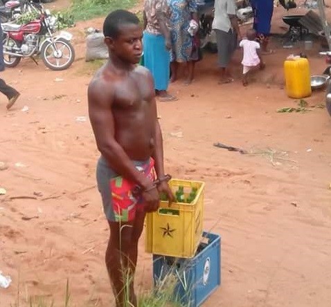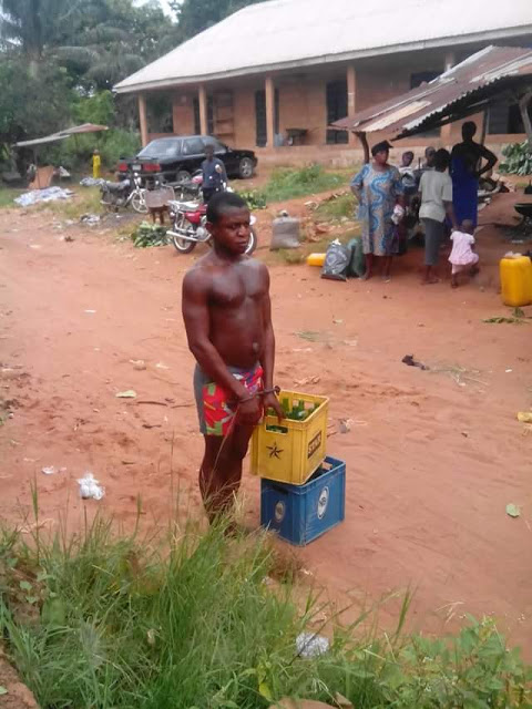A young man was today beaten and paraded in Aguluezechukwu, Aguata Local Government Area of Anambra state for allegedly stealing two crates of Life beer.