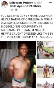 “YOU SEE THIS GUY BY NAME DOMINION. HE IS A NATIVE OF OTUESEGA IN OGBIA LGA, BAYELSA STATE, NOW RESIDING AT BIOGBOLO SUB-COMMUNITY IN AGUDAMA-EPIE TOWN, YENAGOA