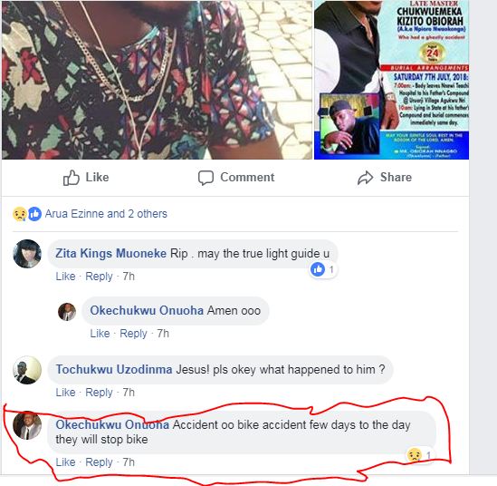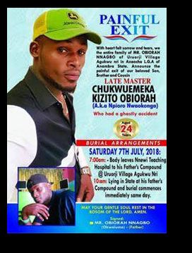 So sad, very sad, a young man named Kizito Chukwuemeka was killed in an Okada accident just few days to the ban of Okada in Anambra state.