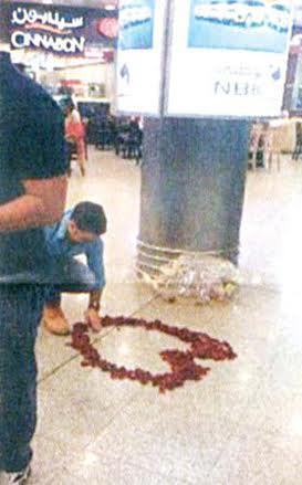 People at the Kuwait International Airport witnessed a romantic scene on May 8, reports Al-Rai daily. A young man placed red roses on the floor of the arrival lounge in the shape of a heart and a gift to receive his new wife who arrived from an unidentified location.
