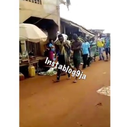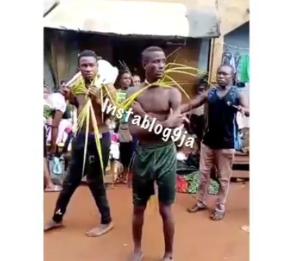 Two young men paraded after being nabbed trying to sell an old woman’s stolen goat in Eke market, Anambra.