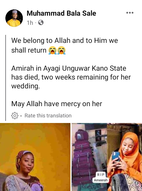 The lady identified as Ameerah died in Ayagi, in Dala Local Government Area of Kano State.