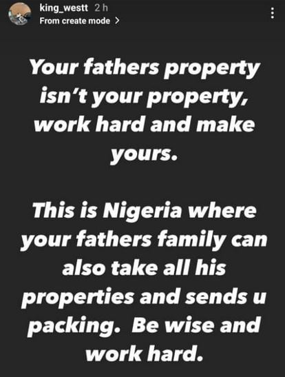 According to him, the family of one’s father can take all his properties and leave the kids stranded which is why he urges everyone to work hard.