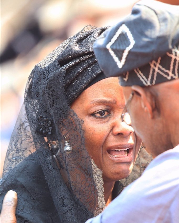 Former First Lady of Zimbabwe GRACE MUGABE cries to former PRESIDENT OLUSEGUN OBASANJO, something like: “your friend is gone…”