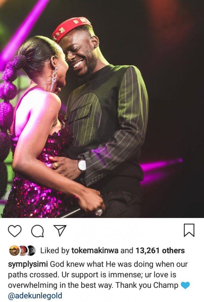 Simi celebrated her man, Adekunle Gold, with beautiful words after he joined her on stage.