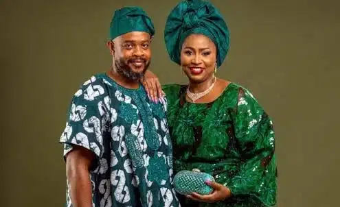 Morayo, known for her strong on-screen presence, appeared reflective as her husband spoke. The discussion highlighted how family influence and faith shaped their journey.