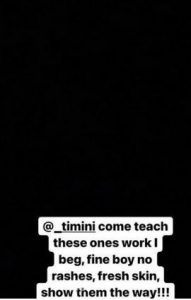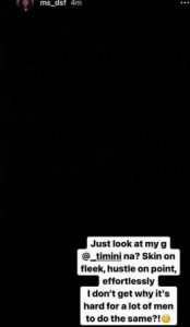 Dorcas Fapson went on to praise her friend and colleague, Timini Egbuson for his skin while asking why it’s hard for some men to do same.