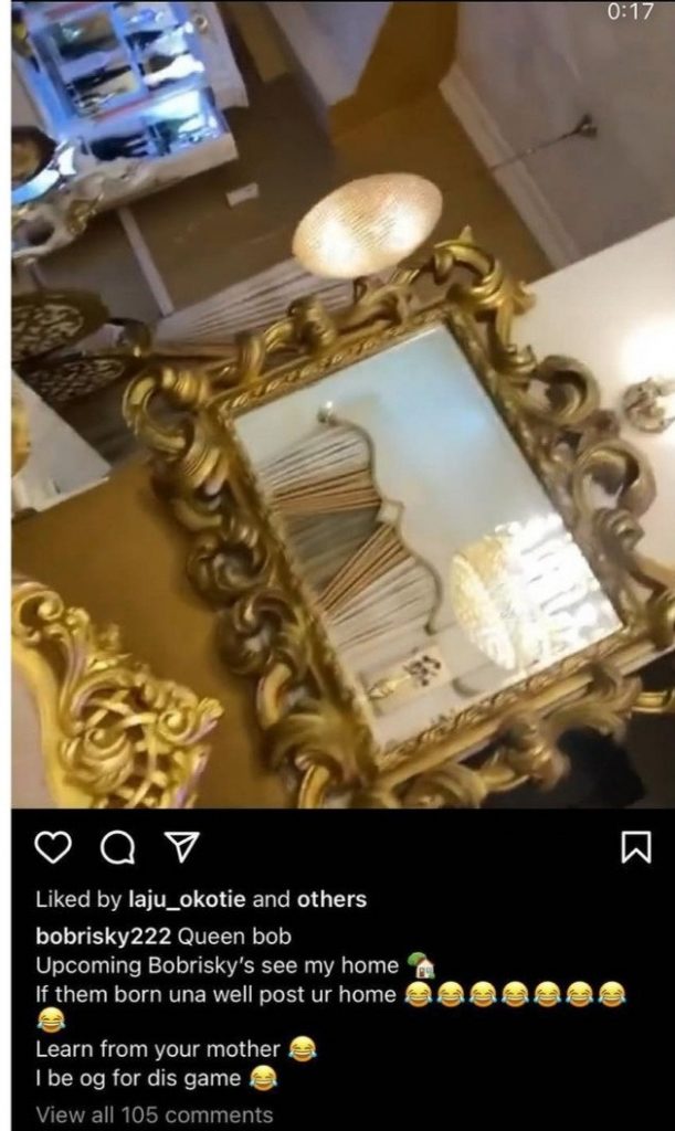 He wrote: “Upcoming Bobrisky’s see my home. If them born una well, post your home. Learn from your mother. I be og for dis game.”