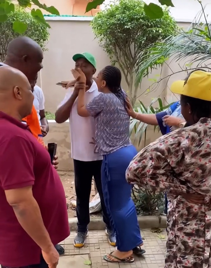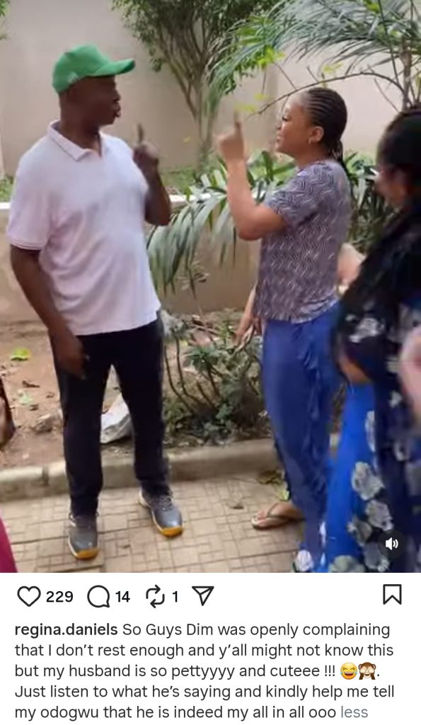 As he said this to the people around, Regina tried to cover his mouth with her hand and she told the people gathered around that her husband is “lying”.