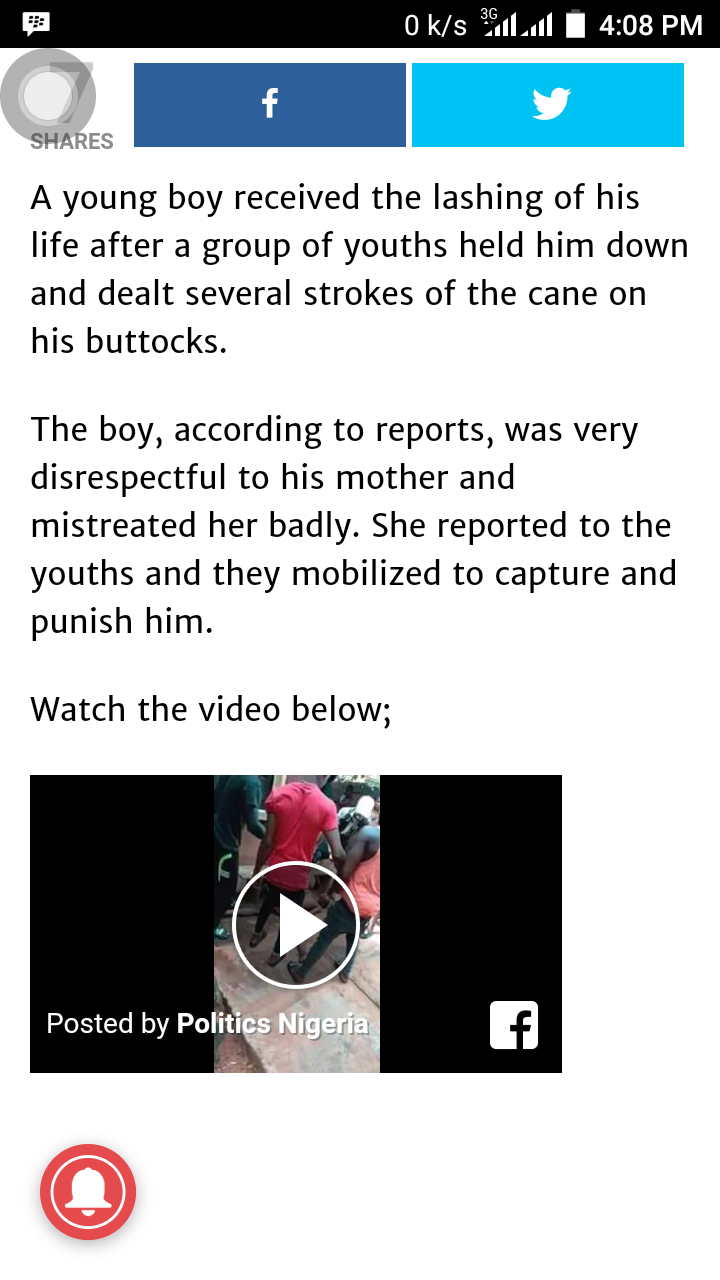 The boy, according to reports, was very disrespectful to his mother and mistreated her badly. She reported to the youths and they mobilized to capture and punish him.