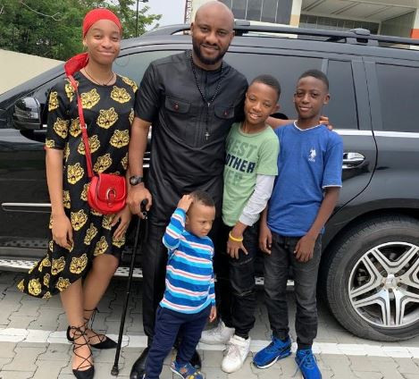 The actor cum politician shared the photo above and wrote, ‘me and my kids. Danielle, Kambi, Karl and Victory Yul-Edochie’.