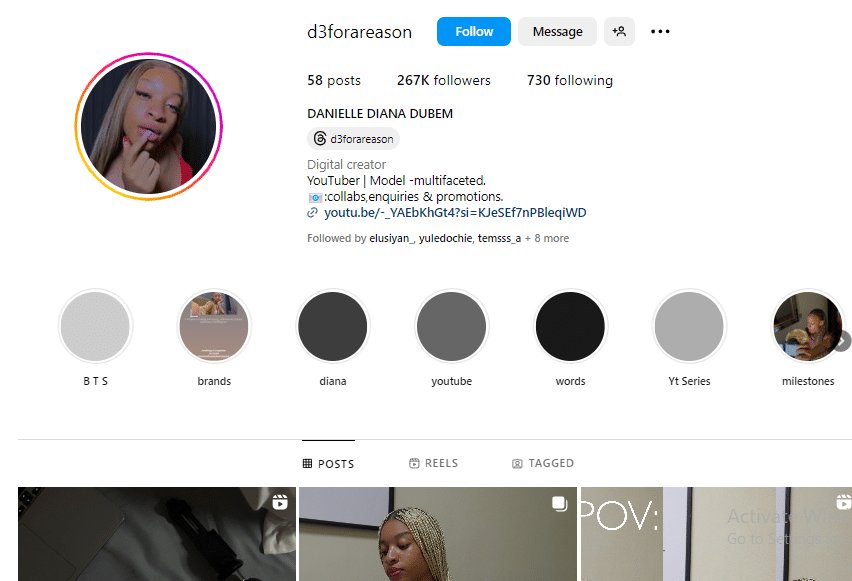 A check on Danielle’s Instagram has revealed that she yanked off her father’s name Yul-Edochie, from her Instagram page, leaving only DANIELLE DIANA DUBEM.