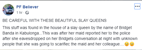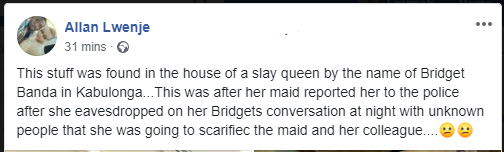 According to trending reports, the single mother of one identified as Bridget Banda, shocked police officers who discovered the items at her residence in Kabulonga area of Lusaka, Zambia.