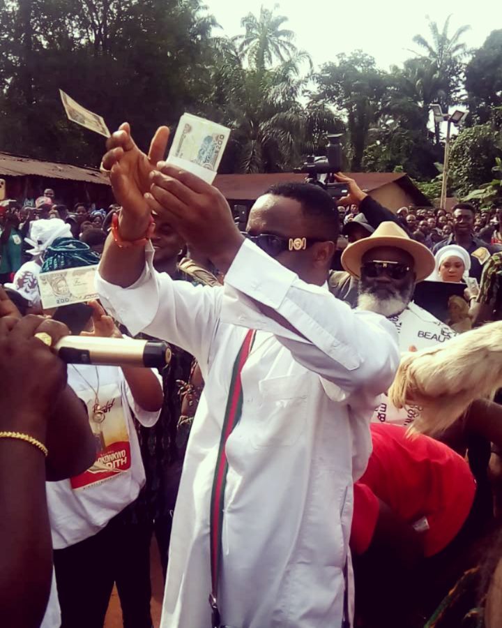 spotted giving bundles of money to Rechael Okonkwo during her Mothers Burial.